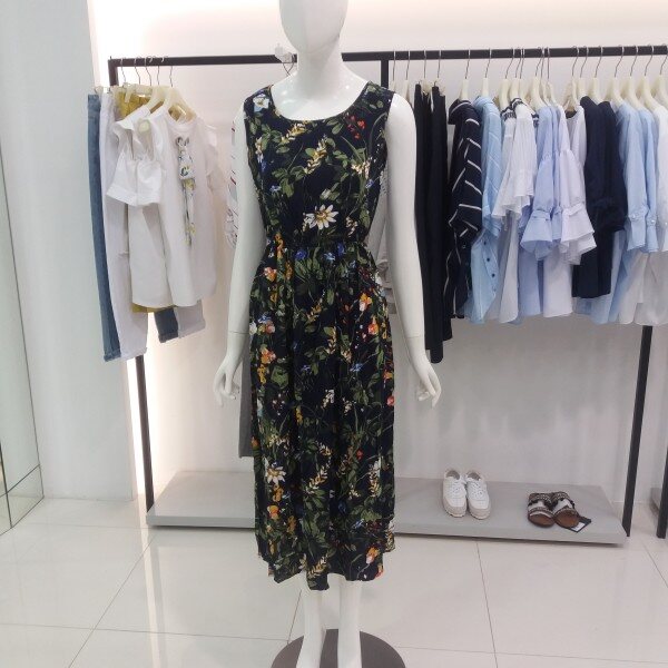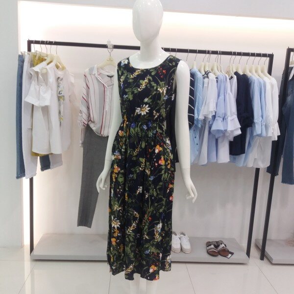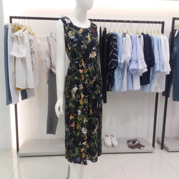 NICE CLAUP, 프린트가 들어간민소매원피스입니다 시원한소재감과 색감이 화려한 시원한 원피스입니다다양한 아이템으로 세련되고 스타일리쉬한 연출을 해보세요