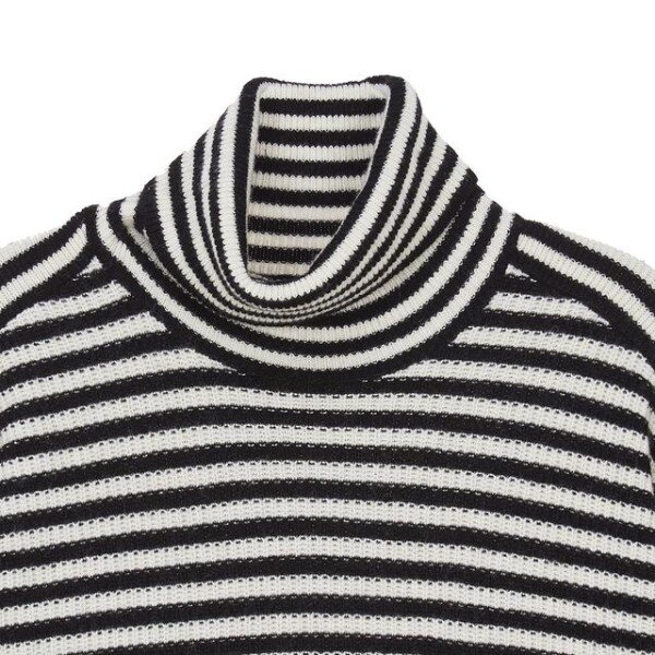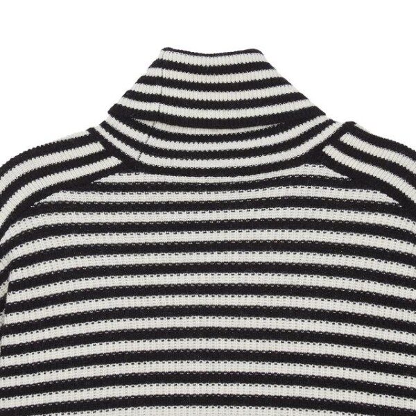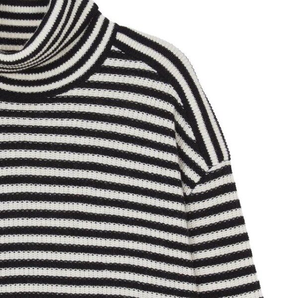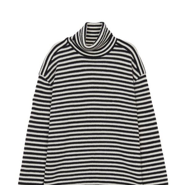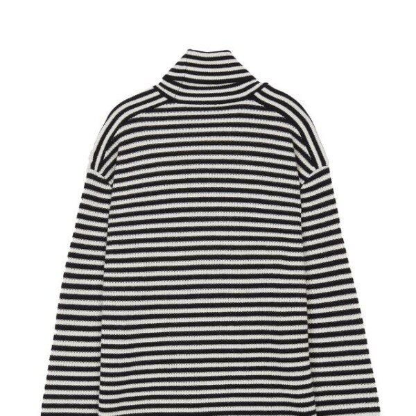 목을 감싸주는 터틀넥 디자인의 컬러를 더한 스트라이프 패턴이 어우러저 캐주얼한 외관을 연출한 레귤러 핏 긴팔 니트입니다.
