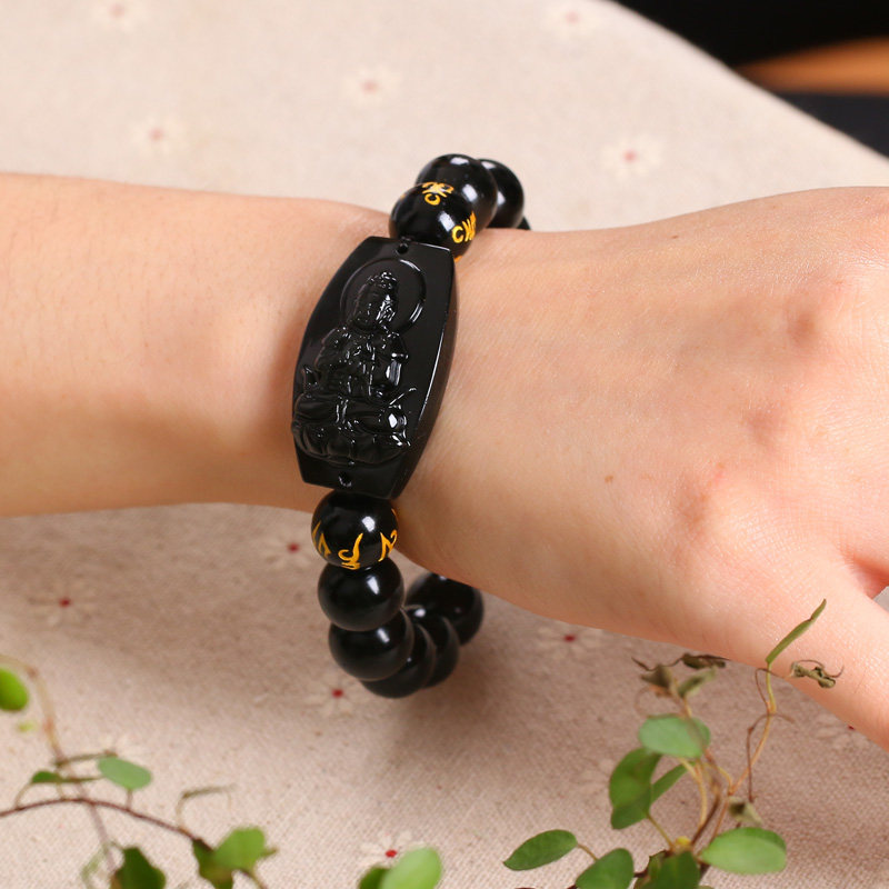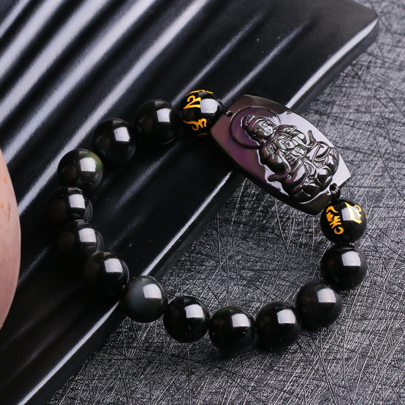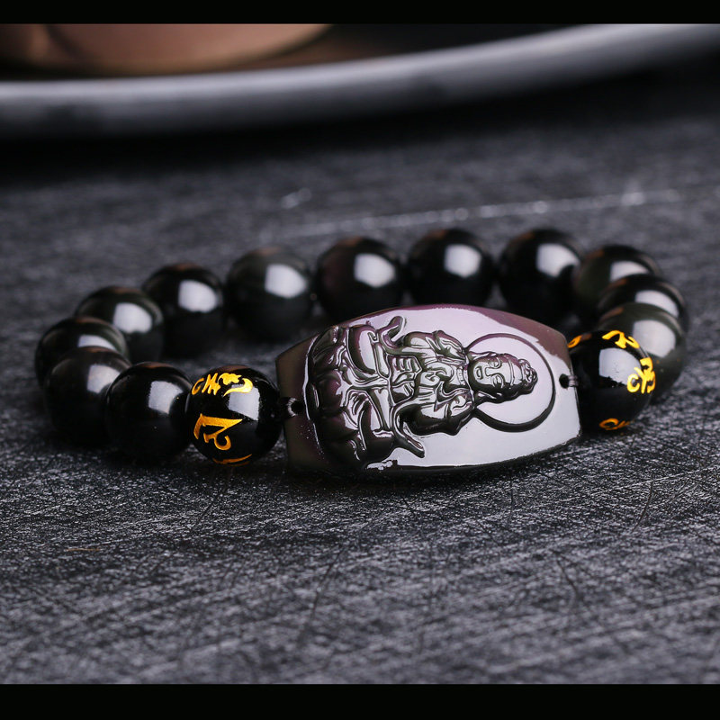 开光属羊属猴大日如来生肖本命佛心经手链彩眼黑曜石佛牌手串男女