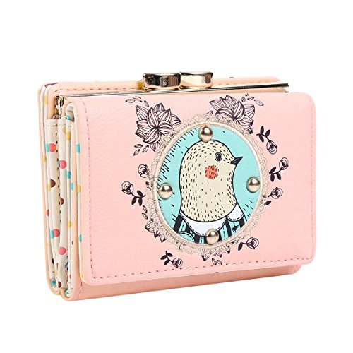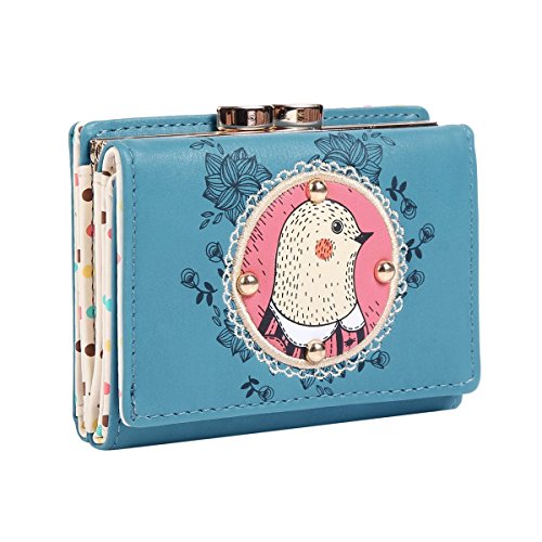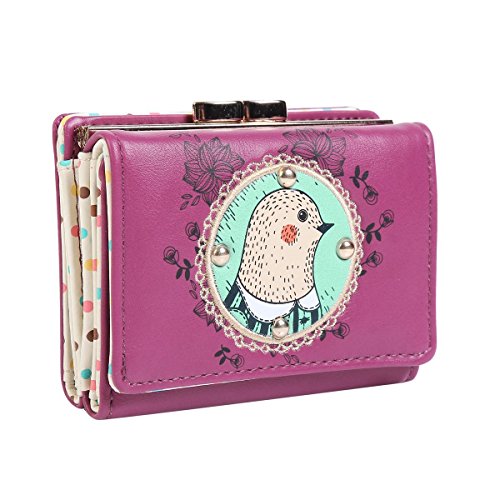 Damara Womens Cartoon Bird Patterned Kiss-lock Cards Holder Wallet,Purple