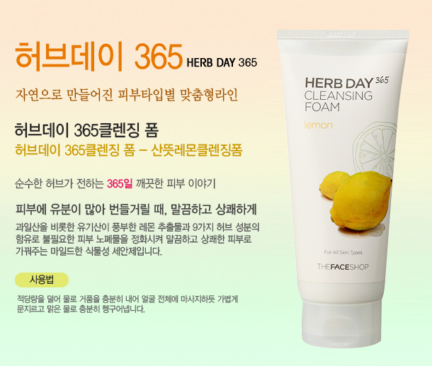 [성분] 정제수 · 미리스틱애씨드 · 스테아릭애씨드 · 포타슘하이드록사이드 · 글리세린 · 라우라마이드디이에이 · 피이지-8 · 세테스-20 · 글라이콜디스테아레이트 · 피이지-40스테아레이트 · 부틸렌글라이콜 · 레몬추출물(1%) · 두송열매추출물 · 레몬밤잎추출물 · 루이보스추출물 · 마돈나백합꽃추출물 · 마로니에껍질추출물 · 보리지추출물 · 비누풀잎/뿌리추출물 · 선백리향꽃/잎추출물 · 성모초추출물 · 세이지잎추출물 · 수레국화꽃추출물 · 자주천인국추출물 · 캐모마일꽃추출물 · 자몽추출물 · 블랙윌로우껍질추출물 · 파파야열매추출물 · 디포타슘글리시리제이트 · 프로필렌글라이콜 · 디소듐이디티에이 · 메칠파라벤 · 프로필파라벤 · 향료 · 황색4호