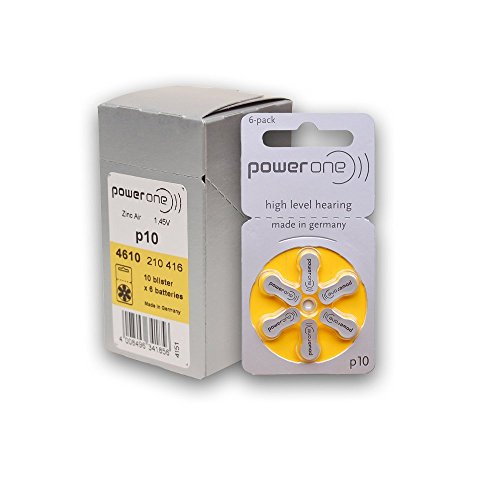 Power One Zinc Air Hearing Aid Batteries (Yellow) Size 10 Pack of 60