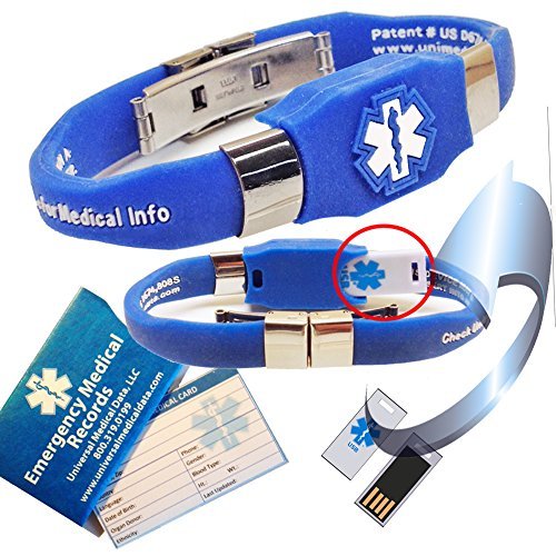 -. Title : Waterproof ELITE USB blue silicone medical alert ID bracelet with 2 GB USB (Blue) by Universal Medical Data