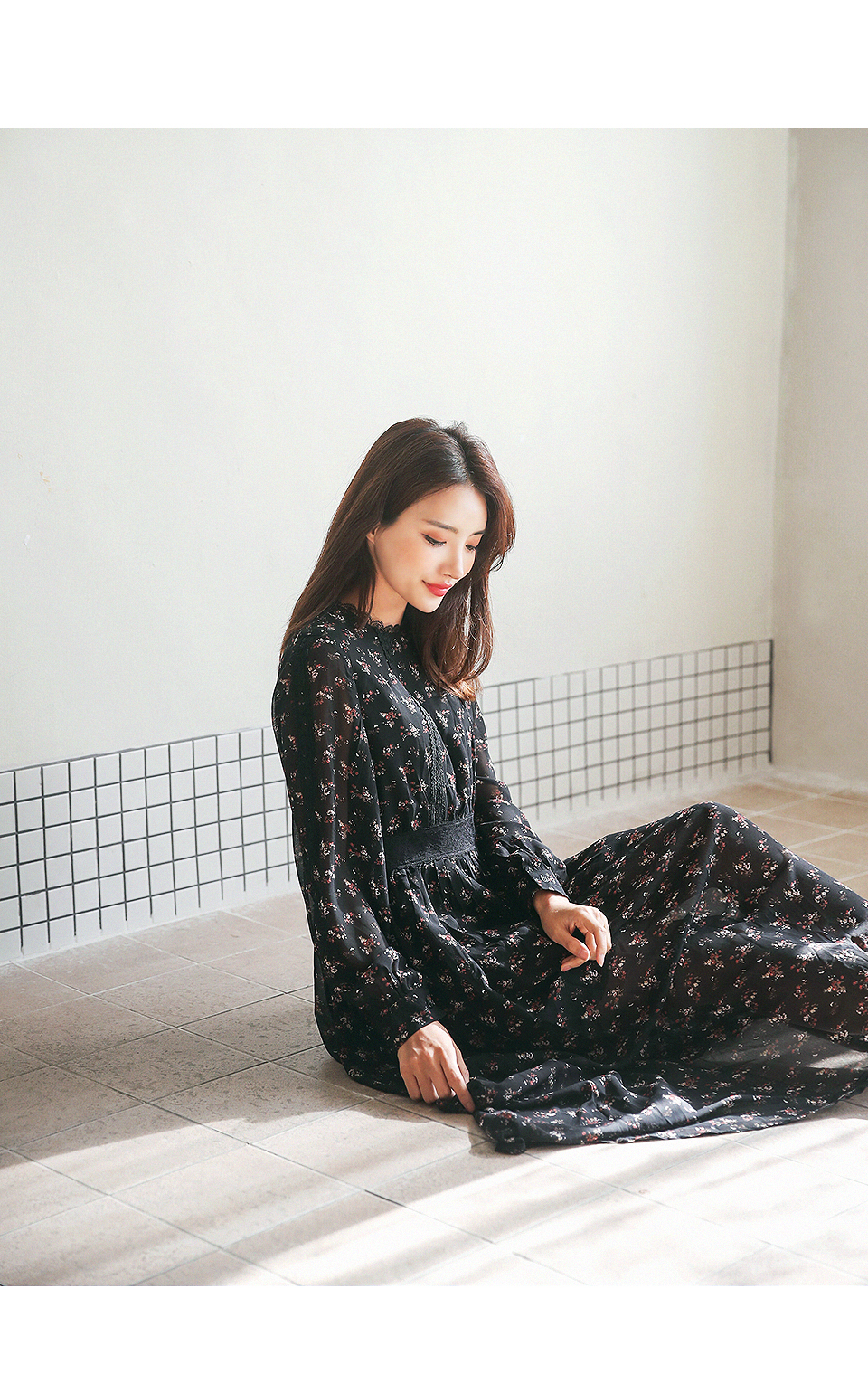 고혹적이고 빈티지한 플라워 패턴과 하늘하늘한 쉬폰 소재로