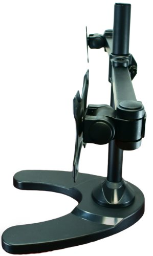 - Feature : Fits most flat panel monitors from 13" to 24". Supports up to 22 lbs per monitor. / Height adjustable. Single arm can articulate in two different locations for best positioning. / Tilt: +/- 15 degrees, Swivel: 360 degrees, Rotate: 360 degrees / VESA mounting pattern: 75 x 75 or 100 x 100; / Heavy duty weighted metal base ensures stable mounting onto the desk.