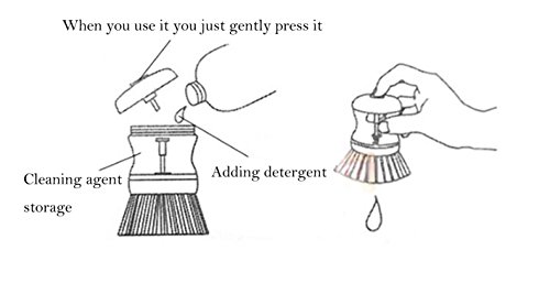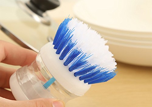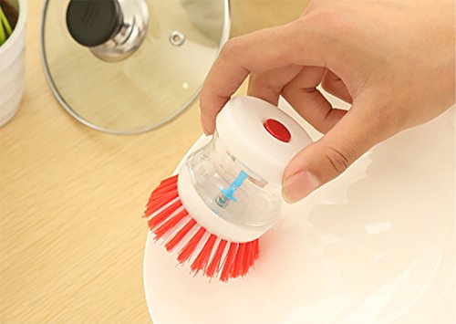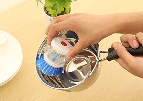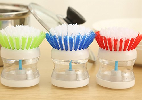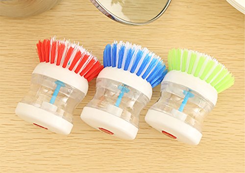 -. Binding : Kitchen -. Brand : CUGBO -. EAN : 9191792455107 -. Feature : The brush dispenses soap with the push of a button using air displacement. / Rounded handle fits in your palm and is easy to hold at any angle / Perfect for cleaning pots/dishes/pans and any kitchen wares / Each package contains 3pcs, assorted colors / This brush constructed of plastic, with durable bristles that easily scrub away baked-on food -. IsAutographed : 0 -. ProductGroup : Home -. ProductTypeName : HOME -. Title : Pot/Dish Brush -3 Pcs Pressure Liquid Self-Dispensing Detergent Kitchen Brush Convenience Pot Dish Bowl Cleaner with Assorted Colors