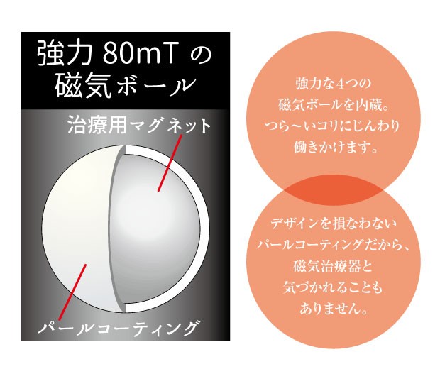 ●80mTの最大磁力を持つ強力磁石を4つ配置!