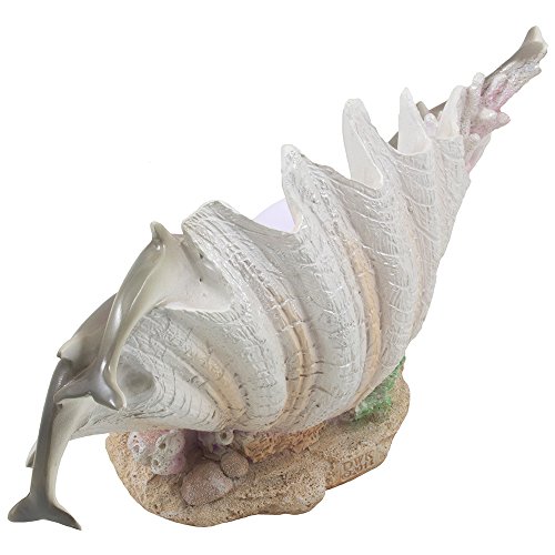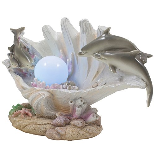 Dolphins Swimming Over Clam Shell with LED Light Color Changing Pearl Statue or Night Light for Decorative Artistic Sculptures in Tropical & Beach Decor As Gifts for Dolphin Lovers