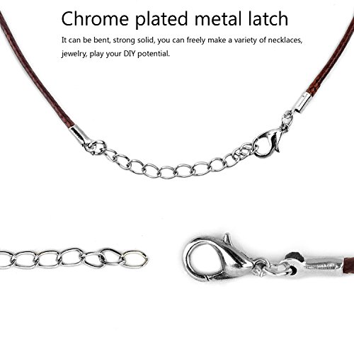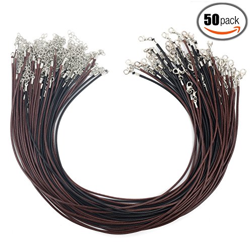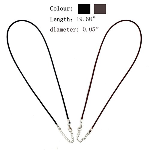 - COLOR and SIZE - 25pcs in black and 25pcs in brown, bundle of 50pcs. A little longer than a choker.The clasp is a "lobster claw" style. The "claw" part that opens is about 8mm long and about 14mm at its widest point.Cord diameter: 2mm.Cord length: 18 inches. Lobster claw length: 5inches. The lobster claw clasps are strong enough to hold up to typical wear. Extension chain length: 2inches. They are long and can be adjusted by the clasp and chain. Lightweight,flexible,durable,strong and well made.