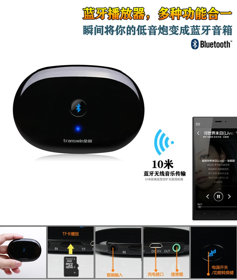 1. Wireless music bluetooth receiver, remote transmission (10m)