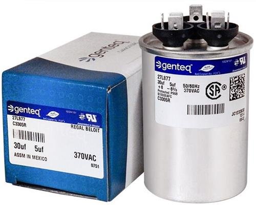 GE Genteq Replacement for Capacitor 30/5 uf 370 volt 97F9833, 370V, 30/5 MFD, Dual Run, Round Capacitor