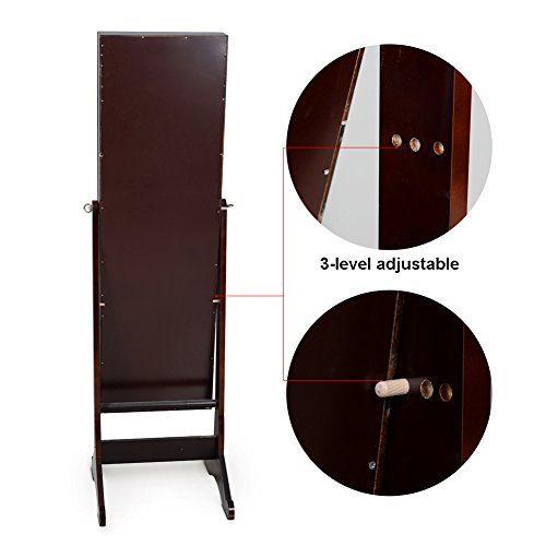 FEATURES: Full length Mirror front, 3-level Adjustable angel; Sturdy MDF wood; Black Inner lining; Lock and key; Easy assembly required.