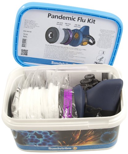 -. Binding : Misc. -. Brand : Sundström -. EAN : 7392203001193 -. Feature : A unique face seal design providing a high protection factor / Face piece is made of heat treated silicone with minimal risk of contact allergies / Double exhalation valve design providing only half the breathing resistance of competitive respirators / High-efficiency P100 particulate filter with a minimum 99.997% filtration efficiency / Can be used with our P100 filter and/or a range of chemical cartridges which can be "piggy-backed" together -. Label : Sundstrom Safety Inc. -. Manufacturer : Sundstrom Safety Inc. -. Model : H05-5421S -. MPN : H05-5421S -. NumberOfItems : 1 -. PackageQuantity : 1 -. PartNumber : H05-5421S -. ProductGroup : BISS -. ProductTypeName : SAFETY_SUPPLY -. Publisher : Sundstrom Safety Inc. -. Size : Small/Medium -. Studio : Sundstrom Safety Inc. -. Title : Sundstrom H05-5421S Pandemic Flu Respirator Kit with SR 100 S/M Silicone Half Mask, P100/HE Particulate Filter and Prefilters -. Warranty : Yes