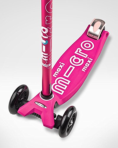 The all-new Maxi Deluxe Kickboard offers exciting new features for children ages 5-12. Enjoy 8 new colors, an anodized stem, and a new deck material to provide optimal grip when scooting. Kids love the ride and you will love the years of fun and exercise it provides. This makes the Maxi Deluxe one of the best-value presents you can buy your child. The smooth-gliding Maxi Deluxe has a curving and carving action that allows kids to surf the sidewalk like a skateboard. Kids use their body weight to lean into smooth, safe turns. The Maxi Deluxe has the smoothest, quietest ride available thanks to high-quality polyurethane wheels and a flexible fiberglass-reinforced deck. Together, these components absorb bumps in the sidewalk and offer an extremely comfortable ride. Safety-certified by the CPSC, the Maxi Deluxe is recommended for kids up to 150 lbs. Its exceptionally strong construction is flexible and lightweight; this makes it great for cruising in urban and suburban neighborhoods alike. For best protection, we recommend that kids wear helmets and knee pads when riding.Feature