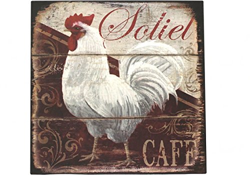Happy Chickens,Rooster Metal Tin Sign,Vintage Style Wall Ornament Home & Cafe & Bar Decor,Size 24X24cm (White)