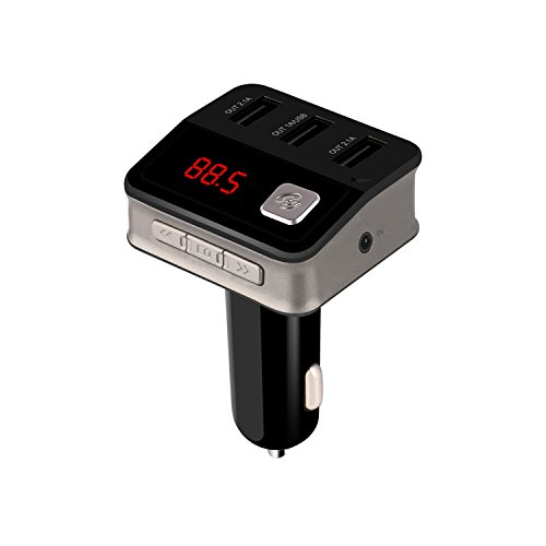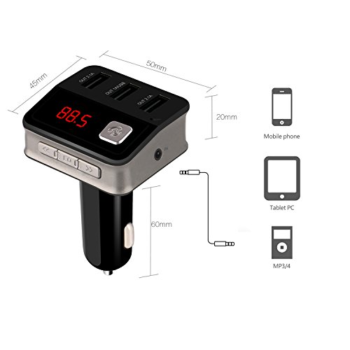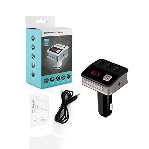 Bluetooth FM Transmitter car kit music adapter, USB car charger, Hands-Free calling and USB Flash Drive Reader for iPhones, Android Smartphones, any Bluetooth devices