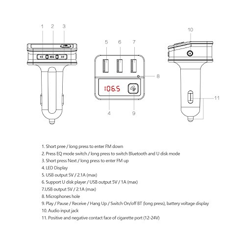 ★Bluetooth: Transmit music/phone call from your phone to car FM Stereo system wirelessly