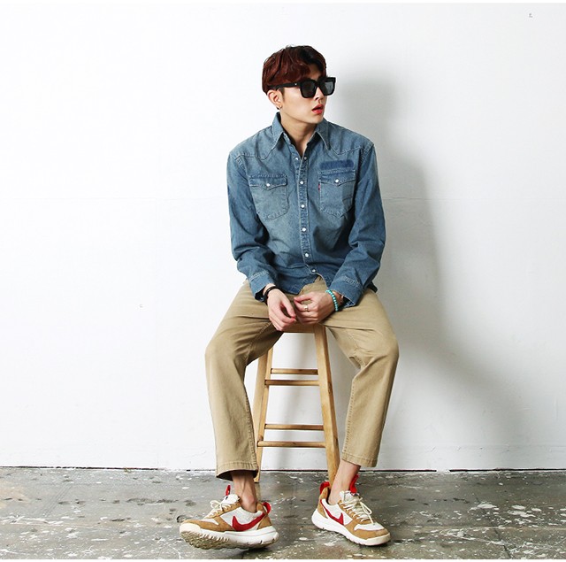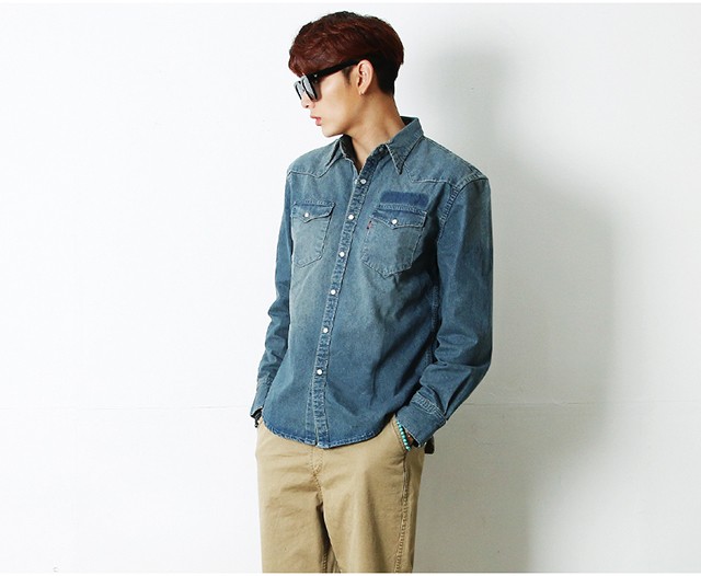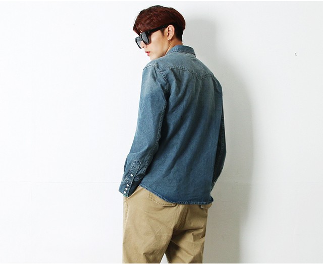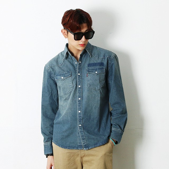 ジャストなサイズ感のウェスタンデニムシャツです。