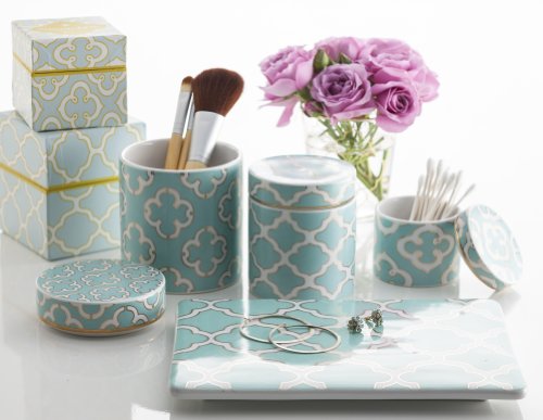 Featuring Moorish architectural flourishes combined with 60's revival style, these porcelain pieces are made with 24-karat gold and make a statement whether in the kitchen or boudoir.