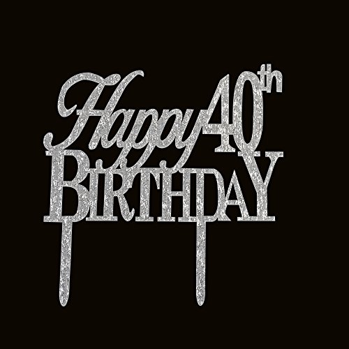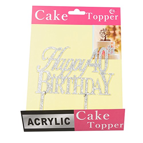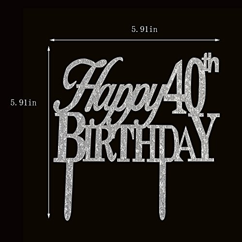 Happy 40th birthday cake topper for 40th birthday cake party decorations silver acrylic