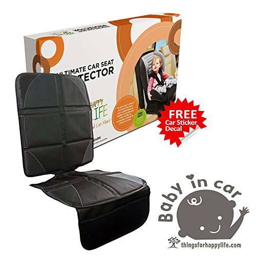 HAPPY CAR SEAT PROTECTOR | HEAD TO TOE PROTECTION | +1 BONUS DECAL STICKER | CONVERTIBLE | CHILD CAR SEAT PROTECTOR FOR BACK SEAT FROM SCRATCHES, SPILLS, AND INDENTATIONS! INFANT SEATS TO BOOSTERS!