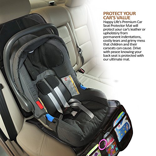 ? PROTECT YOUR CAR'S VALUE - Happy Life's Premium Car Seat Protector Mat will protect your car's leather or upholstery from permanent indentations, costly tears and grimy mess that children and their carseats can cause. Drive with peace knowing your back seat is protected with our ultimate mat.
