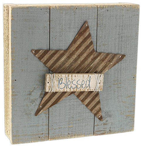 Honey & Me 8" Corrugated Metal Star & Pallet Wood Block Sign "Blessed"