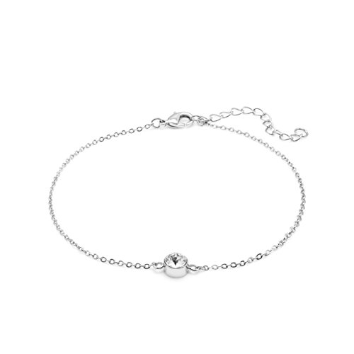 Swath your stride in understated elegance. This ankle bracelet, adorned with a simple, single, spark of crystal can be subdued or fun when stacked in multiples. Adjustable Length Anklet will fit most sizes. 18 karat gold plate is also hypoallergenic!
