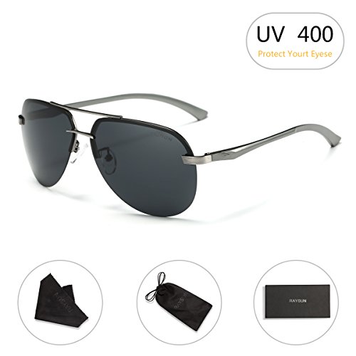 -. Title : Aviator Sunglasses RAYSUN Aluminum Semi Rimless Polarized Vintage Sun Glasses for Men Women UV 400