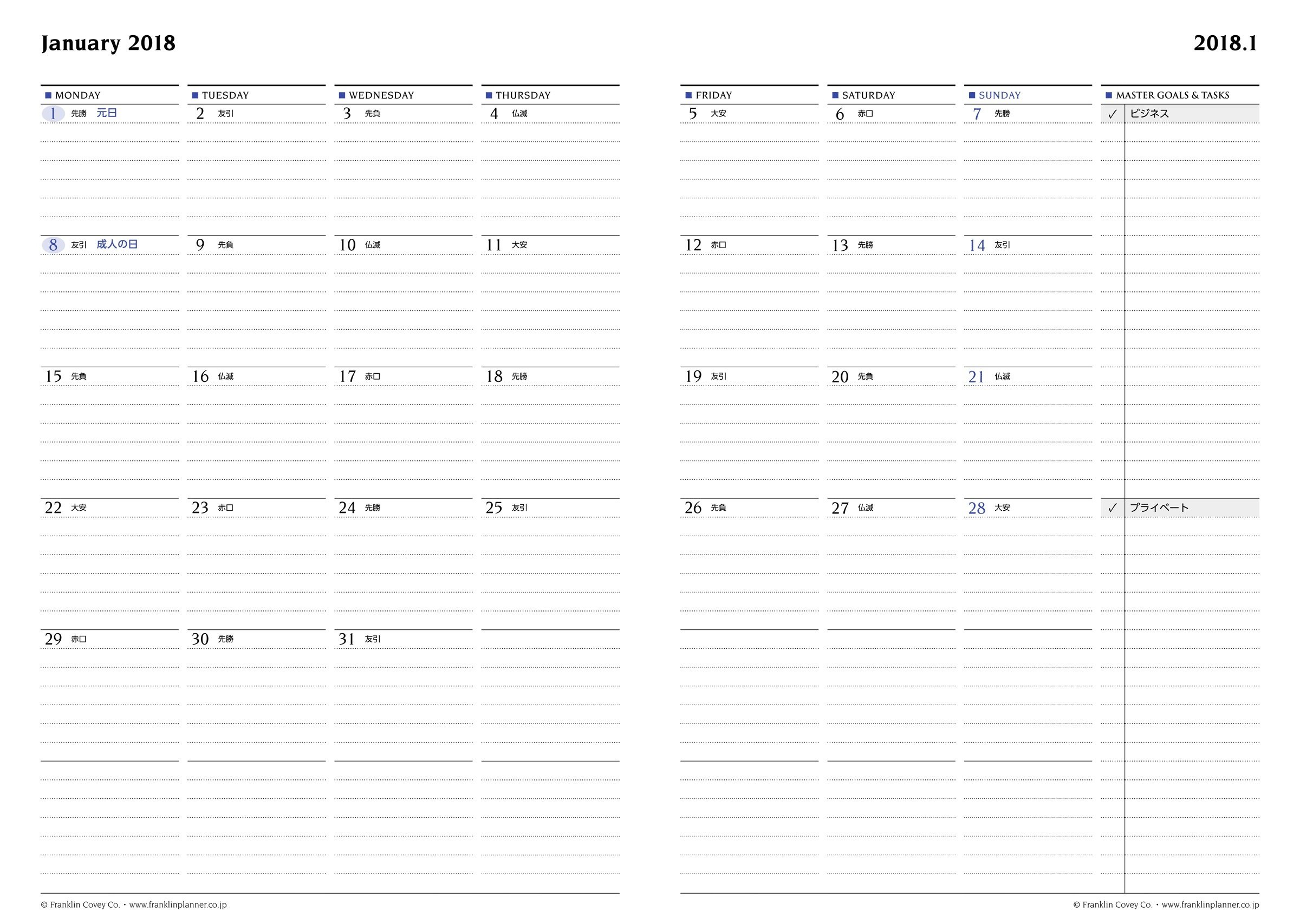 Monthly calendar (December 2017 - December 2018) <Br> Mini calendar (2018 - 2019) <Br> Future calendar (January 2019 - December 2019)