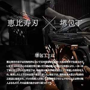 사카이 칼은 통상 산업 대신은 전통 공예품으로 지정되어 현재는 업무용 칼 점유율 90 % 이상을 자랑 국내외 전문 요리사도 애용되고 있습니다.