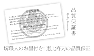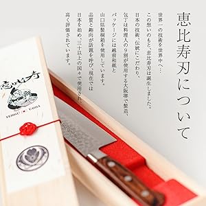 에비스 잎 칼은 600 년 이상의 전통을 이어받은 사카이 칼 장인의 확실한 기술로 하나 하나 정성스럽게 마무리되어 있습니다.