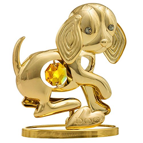 "2018 Year of the Dog" 24K Gold Plated Puppy Tabletop Ornament w/ Gold Crystal | Elegant Metal Dog Figurine | Premium Home, Living Room or Office Décor | Small, Stable Stand