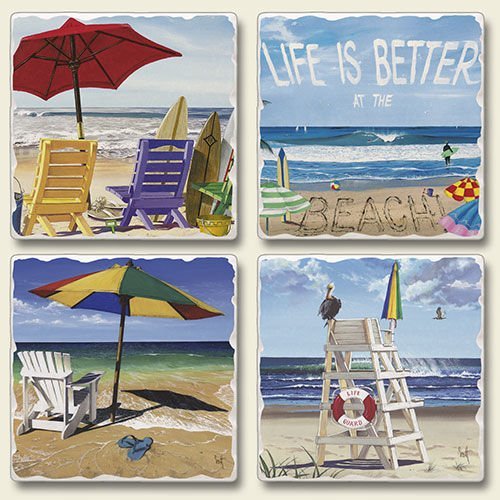 Coaster Set - Life Is Better At the Beach Set of Four Stone Coasters - Coastal Coasters - Beach Coasters