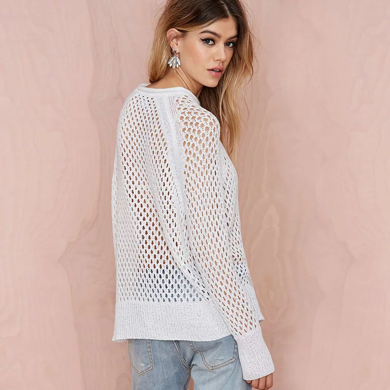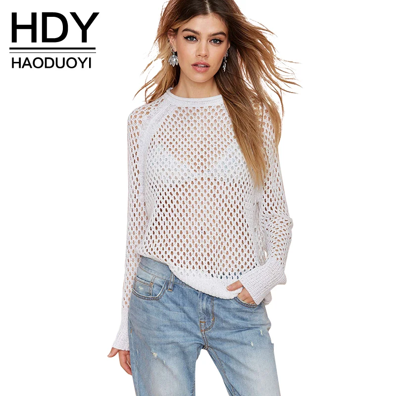 HDY Haoduoyi Solid White Sheer Women Sweatshirts O-neck Long Sleeve Casual Knitted Tops Women Loose Cut Out Pullovers Sweatshirt | |||||||||||||||||||||||||||||||||||||||