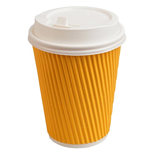 Snapcups Best Disposable Coffee Cups to Go - Premium Hot Paper Cup With Lids 12 Oz, (30 Count), Yellow - Perfect for Ripple and Insulated Cups - No Soaking or Smells - No Sleeves Needed