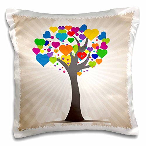 3dRose pc_101193_1 Cute Multi-Colored Tree with Heart Shaped Leaves-Pillow Case, 16 by 16"