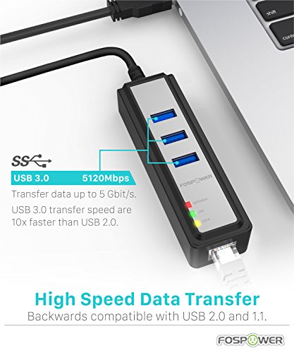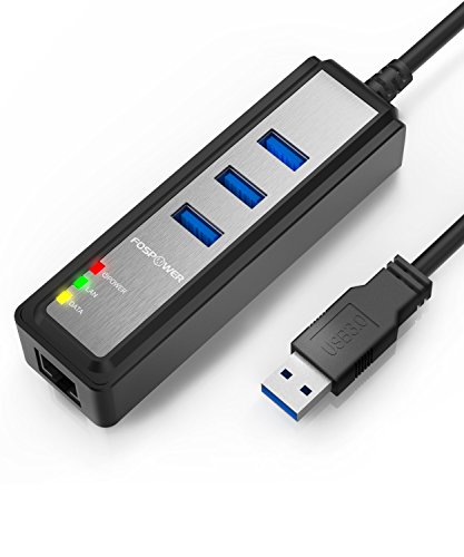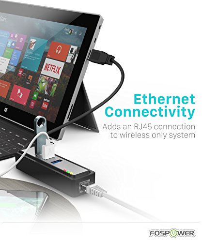 USB Network Adapter, FosPower [2-In-1] 3 Port SuperSpeed 3.0 USB Hub with Gigabit Ethernet Port RJ45 10/100/1000Mbps Network Adapter Converter for Microsoft Surface, Laptop, PC, Mac, Chromebook