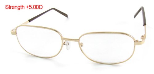 -. Title : +5.00 Gold Tone Metal Full Rim Optical Reading Glasses