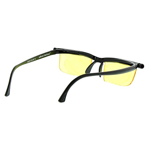 -. Binding : Health and Beauty -. Brand : ADLENS -. Color : Black/Yellow -. EAN : 5055600901696 -. Feature : From -6D to +3D diopters / Instantly adjust for near, intermediate, and distance vision / Each lens can be adjusted separately / Custom yellow-tinted lenses designed to filter HEV (high energy visible) light in backlit screens, combating digital eye strain / Comfortable unisex frame and adjustable nosepiece / Custom yellow-tinted lenses designed to filter HEV (high energy visible) light in backlit screens, combating digital eye strain and boosting your productivity and focus / Can be adjusted to improve vision for 90% of eyeglass and contact lens wearers who do not have astigmatism -. IsAdultProduct : 0 -. IsAutographed : 0 -. Label : Adlens -. Manufacturer : Adlens -. Model : EM02CGBKYL -. MPN : EM02CGBKYL -. PackageQuantity : 1 -. PartNumber : EM02CGBKYL -. ProductGroup : Health and Beauty -. ProductTypeName : HEALTH_PERSONAL_CARE -. Publisher : Adlens -. Studio : Adlens -. Title : Adlens Interface Black Frame with Yellow Lens -. UPC : 812316020425 -. Warranty : 1 YEAR