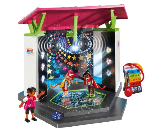 [Description] Dance the night away in the Children``s Club with Disco Choose from one of two dance songs_ or use the included cable to connect your MP3 player Built-in speakers and a rotating dance floor keep the fun going Switch on the working disco ball and flashing colored lights to get the full club effect Includes three figures_ dance floor that converts into a board game_ board game pieces and die_ costumes_ palm tree_ and other accessories