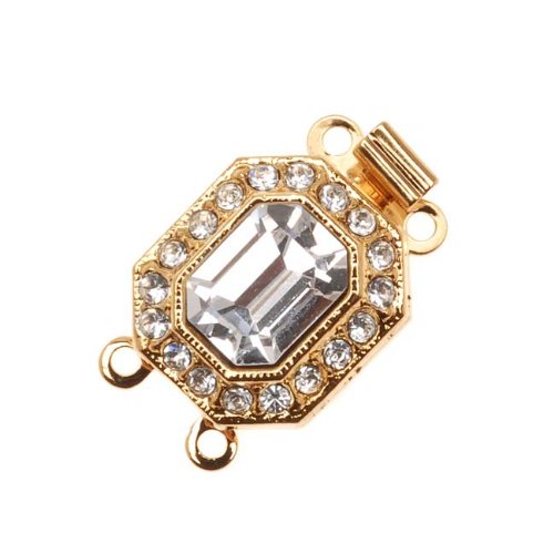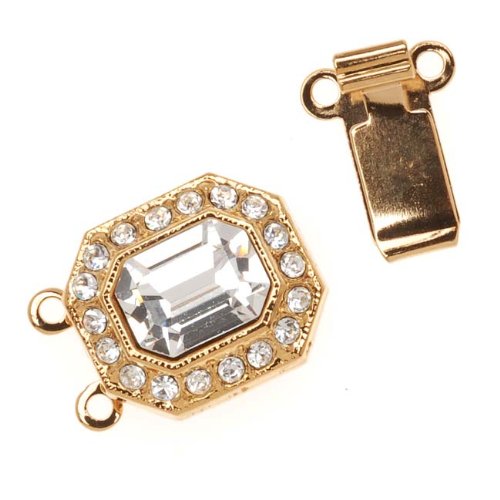 23K Gold Plated 2-Strand Box Clasp With SWAROVSKI ELEMENTS 22x12mm