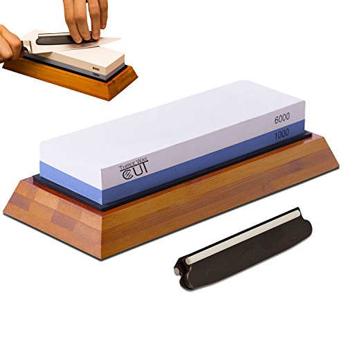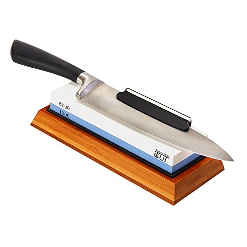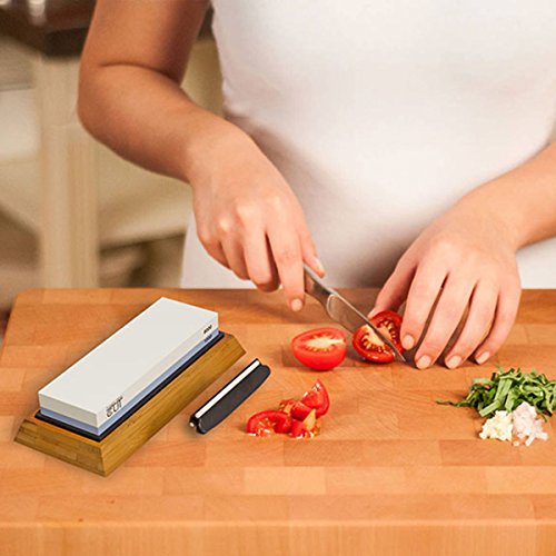 - IMPROVE YOUR CUTTING EXPERIENCE WITH SHARP KNIVES: Our 2 in 1 whetstone has #1000-grit side to smoother the blade & #6000-grit side for finish honing. This will keep your kitchen knives and tools sharp and insure fast and safe cutting as if it was new.