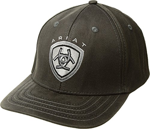 Studio : Ariat Publisher : Ariat Binding : Apparel Product Description Made for the active lifestyle, this Ariat mens cap by MF Western Products is made of high quality materials designed to fit comfortably on your head as you swing your club at the golf course or sit in the stands at your favorite ball game. This popular cap looks good on anyone and can be worn in any type of weather. The strap closure is adjustable at 7 positions to get that perfect fit. Features adjustable snap closure, medium high profile, 2 color contrast stitching on bill, embroidered Ariat signature logo, embroidered eyelets for ventilation. Material: Oilskin. 0