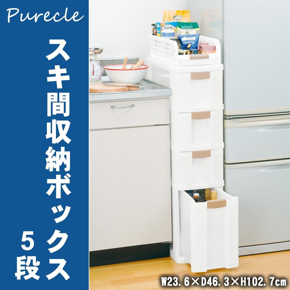 | ちょっとしたすき間が収納スペースになります。1段1段スライド式なので奥の物を取り出しやすく、四隅にキャスターが付いているので移動もラクラク♪ |