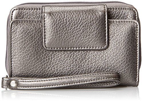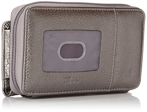 Studio : Buxton Publisher : Buxton Binding : Apparel Product Description Wristlet Wallet With Strap Keep your identity safe from scammers that "scan" your wallet from a distance to steal your personal information! Cute faux leather wristlet has a special liner designed to prevent this type of electronic theft. With front ID window, 11-slot accordion card holder, zip pocket for change and outer snap pouch that can hold most cell phones. Approx. 6"x 3.5"x 1.5" with detachable 48" long shoulder strap (not shown). 0