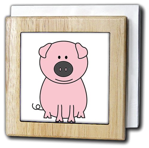 3dRose nh_58248_1 Pink Pig Cartoon Tile Napkin Holder, 6", Natural