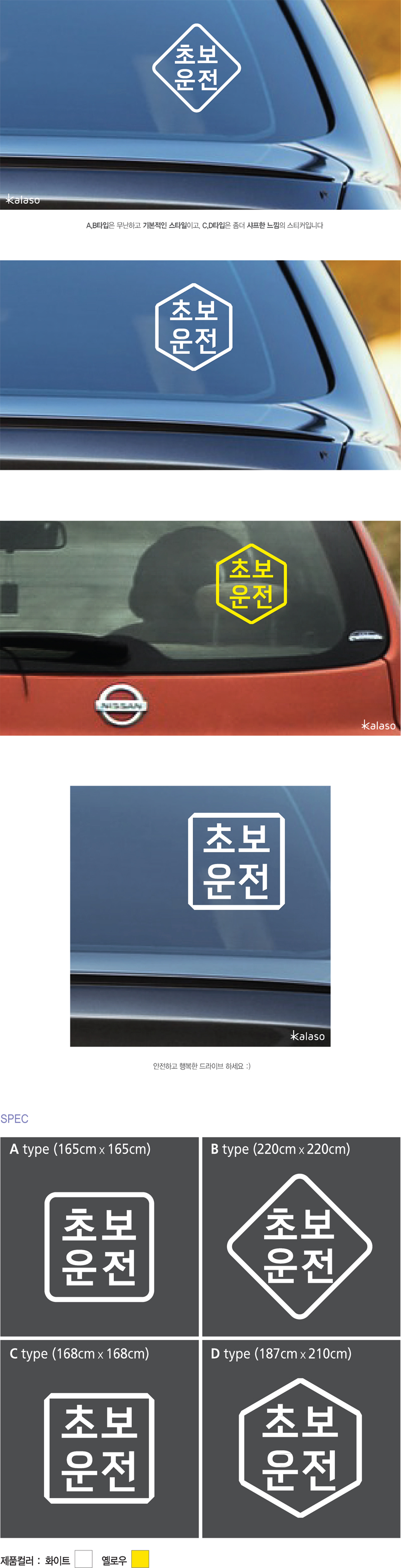 상품명 : 심플 초보운전 차량스티커 4종