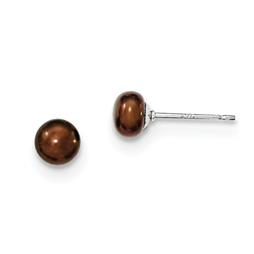 ICECARATS DESIGNER JEWELRY 925 STERLING SILVER 6MM BROWN FRESHWATER CULTURED BUTTON PEARL STUD BALL BUTTON STUD EARRINGS