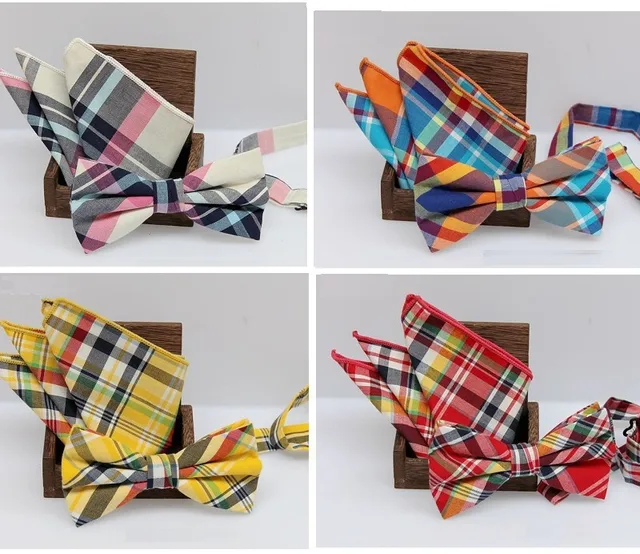 | [해외]체크 bowknot 세트 클래식 자카드 짠 남성 여름 나비 나비 넥타이 나비 넥타이 포켓 스퀘어 손수건 나비 넥타이 정장 세트 |